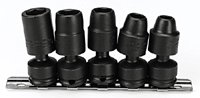 6 pt. Universal Sockets: 3/8", 7/16", 1/2", 9/16", 5/8"